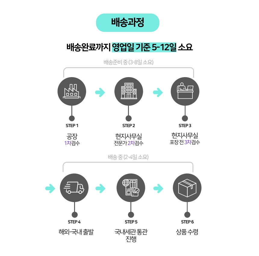 배송기간 : 평일기준 7-12일 소요 됩니다.(※택배사 지연이 없을경우)