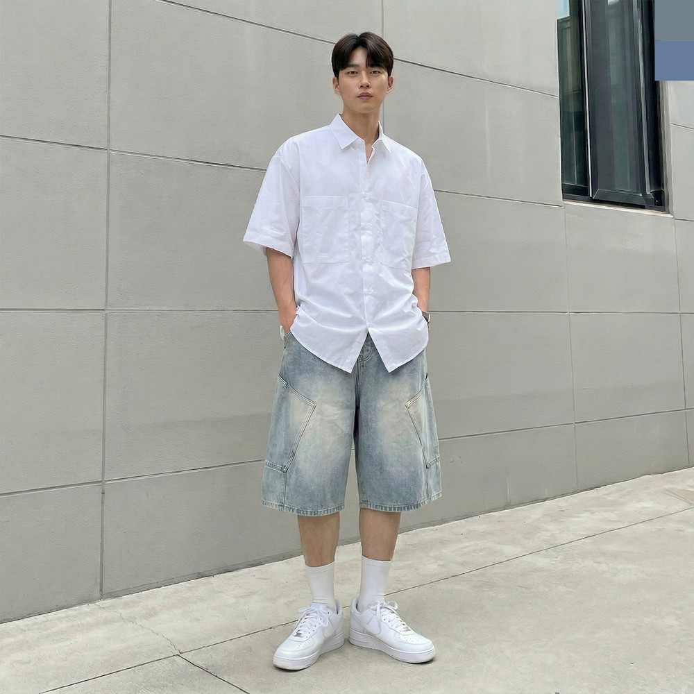 남자 카고 버뮤다 밴딩 데님 반바지 > 로켓배송