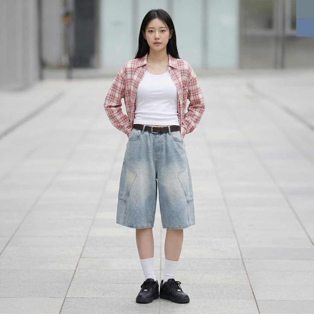 여자 카고 버뮤다 밴딩 데님 반바지 > 로켓배송