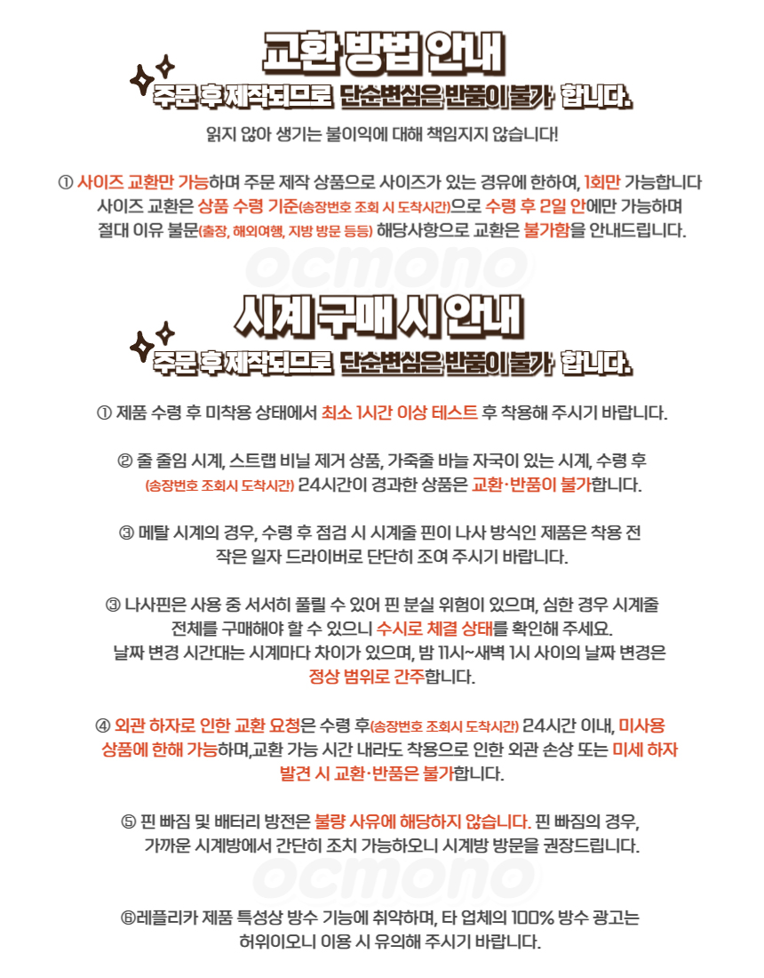 반품/교환은 상품수령(송장번호 조회 시 도작기준) 2일이내 카카오톡으로 문의를 주셔야 진행이 됩니다.
